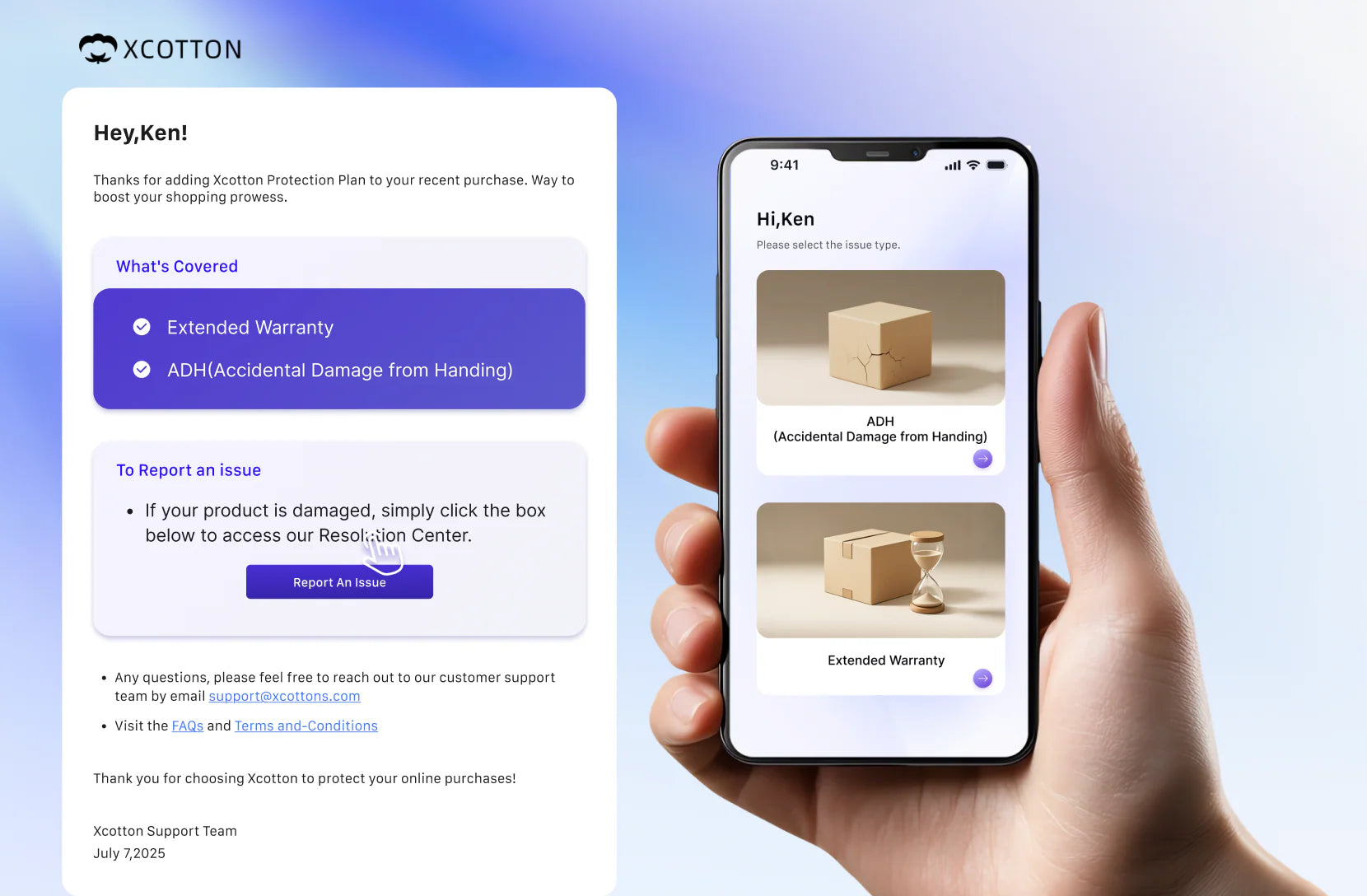 B.Email Confirmation: After purchasing Shipping Protection Services, consumers will receive an email titled ‘Xcotton Shipping Protection Placed Successfully.’ Click the highlighted link in the email to access the Claims Center