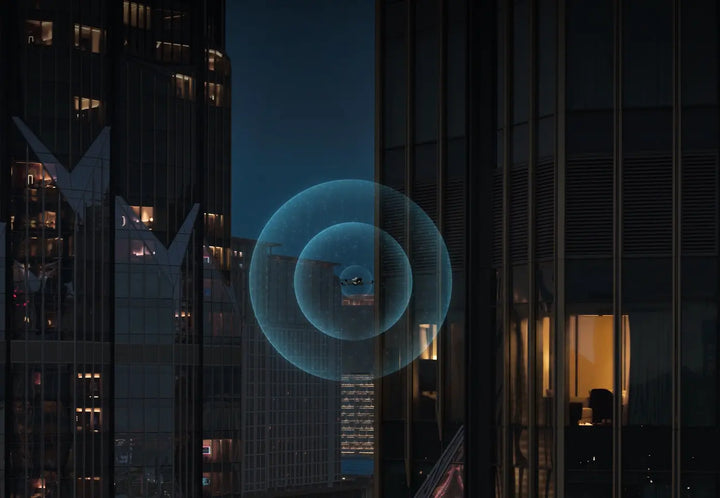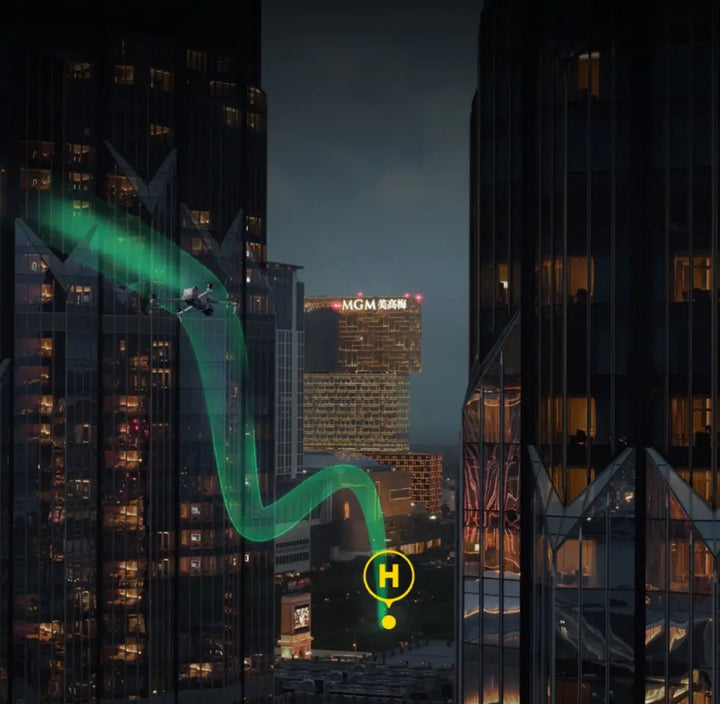 2. DJI Air 3S features new forward-facing LiDAR, supporting nightscape omnidirectional obstacle sensing*** and next-gen Smart RTH. It can actively identify and avoid obstacles, such as buildings along the flight and return paths, ensuring safer urban nightscape photography. It can also memorize flight paths in well-lit conditions, enabling quick takeoffs and safe returns even without satellite signals****.
