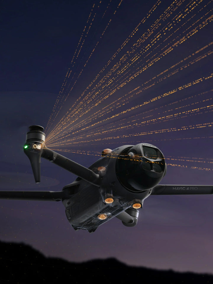 6. DJI Mavic 4 Pro features new forward-facing LiDAR, supporting 0.1 lux nightscape omnidirectional obstacle sensing**** and next-gen Smart RTH. It can actively detect and avoid obstacles such as buildings along the flight and return paths, ensuring safer urban nightscape photography. It can