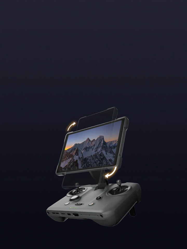 1. The Creator Combo includes the DJI RC Pro 2, which features a new 7-inch screen that boasts a peak brightness of 2000 nits. With its collapsible and rotatable design, it powers on when extended.