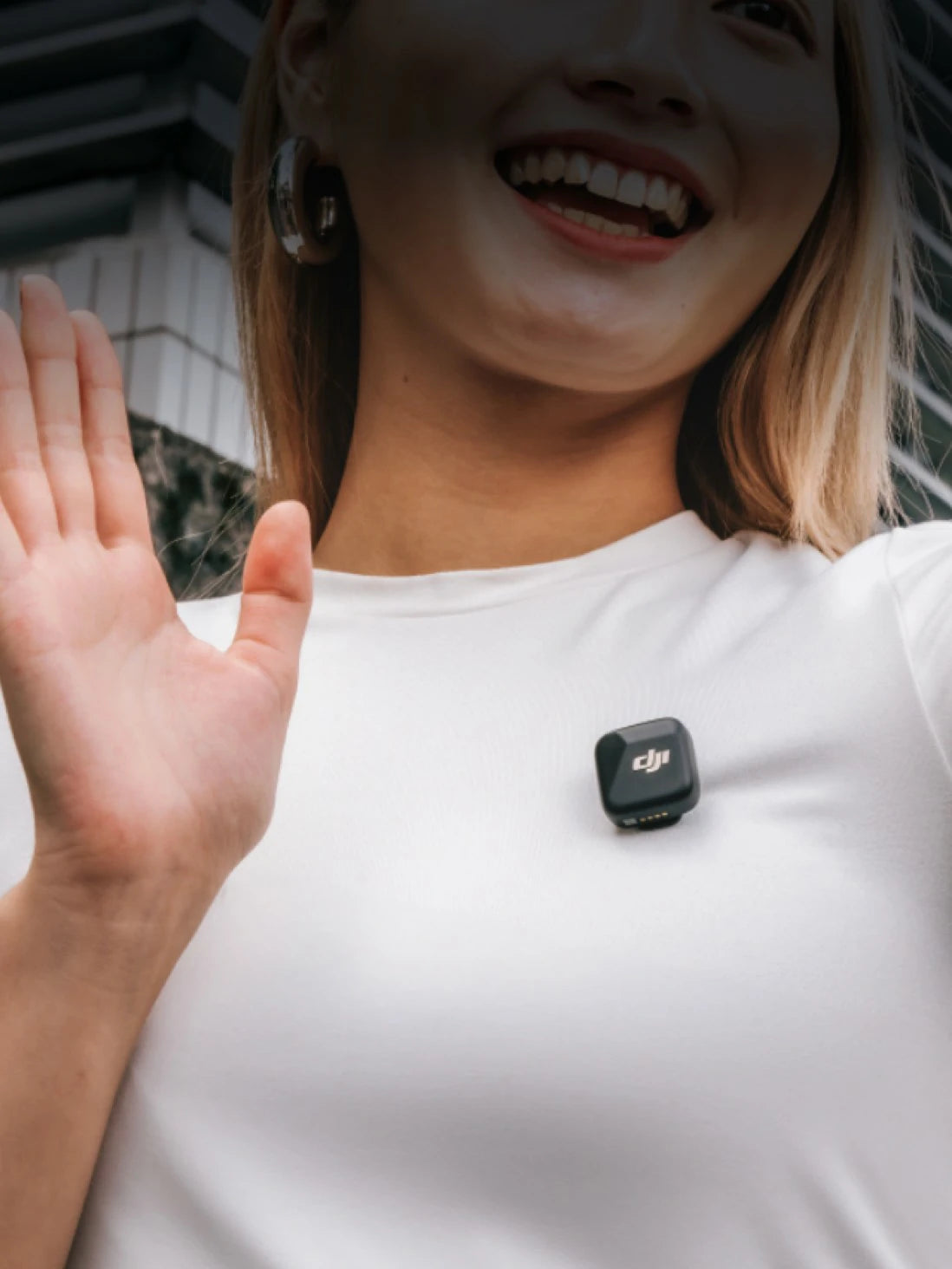 1. More compact design: DJI Mic Mini is small and ultralight, with the transmitter weighing only 10 g. [1] Compared to DJI Mic 2, it offers a more lightweight and discreet wearing experience. It supports both magnetic and clip-on wearing styles, ensuring it doesn't weigh down your collar or flip outward, making it suitable for various wearing needs.