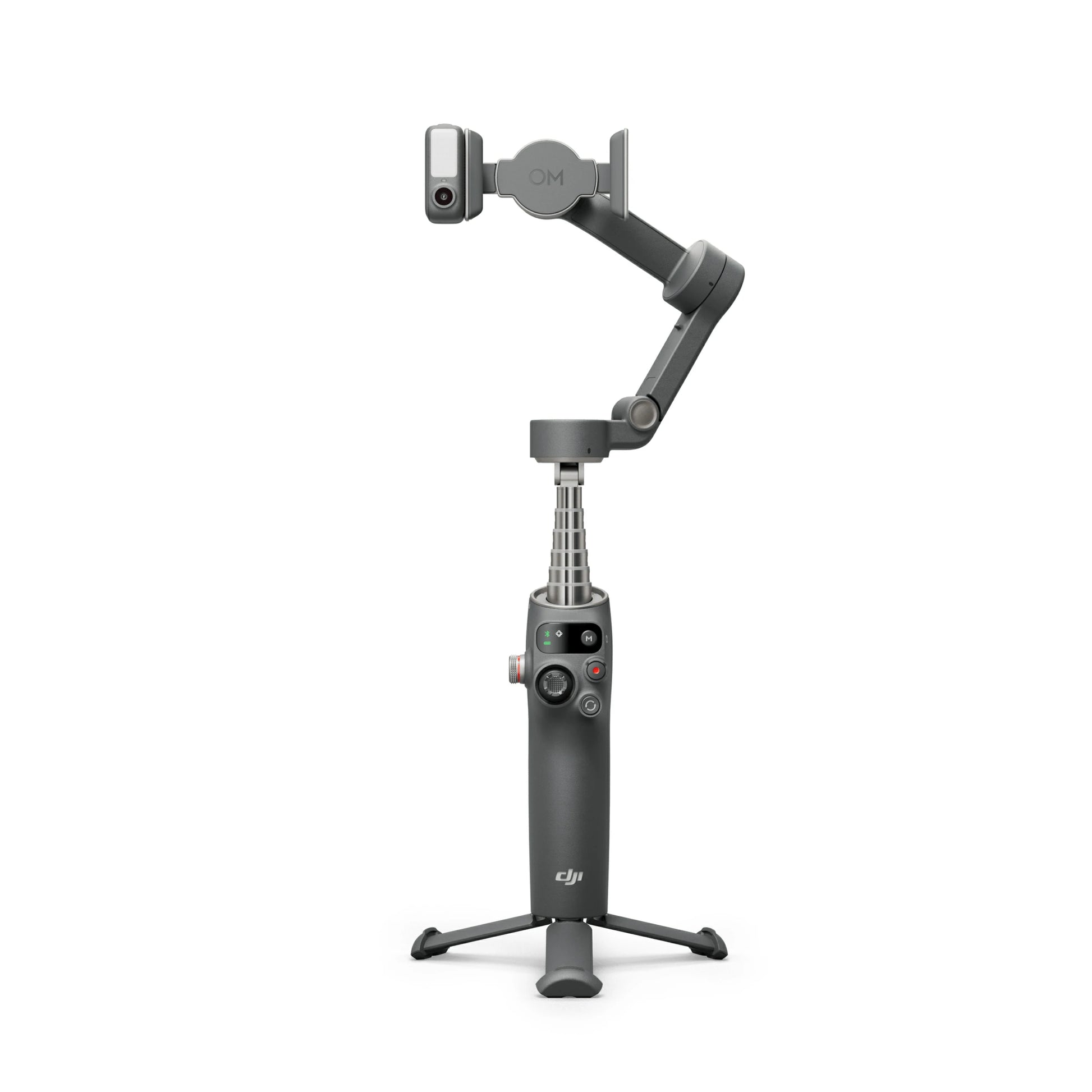 The built-in tripod is suitable for stable, level surfaces in windless environments. In other conditions, it is recommended to attach the DJI OM Grip Tripod to the bottom of the gimbal. The DJI OM Grip Tripod is sold separately.