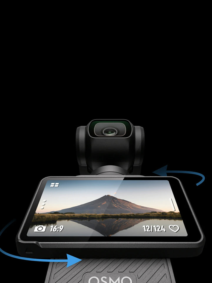 2. Shooting experience: The upgraded 2-inch OLED screen delivers richer colors and higher contrast. The larger image size presents clearer details, and both horizontal and vertical shots can be displayed on full screen. Simply double-tap your subject on the screen to start tracking or rotate the screen to quickly power on or off the device, greatly optimizing your shooting experience. Pocket 3 features built-in Wi-Fi for direct connection to a smartphone without the Do-It-All Handle, quickly achieving photo/video transfer, editing, and sharing.